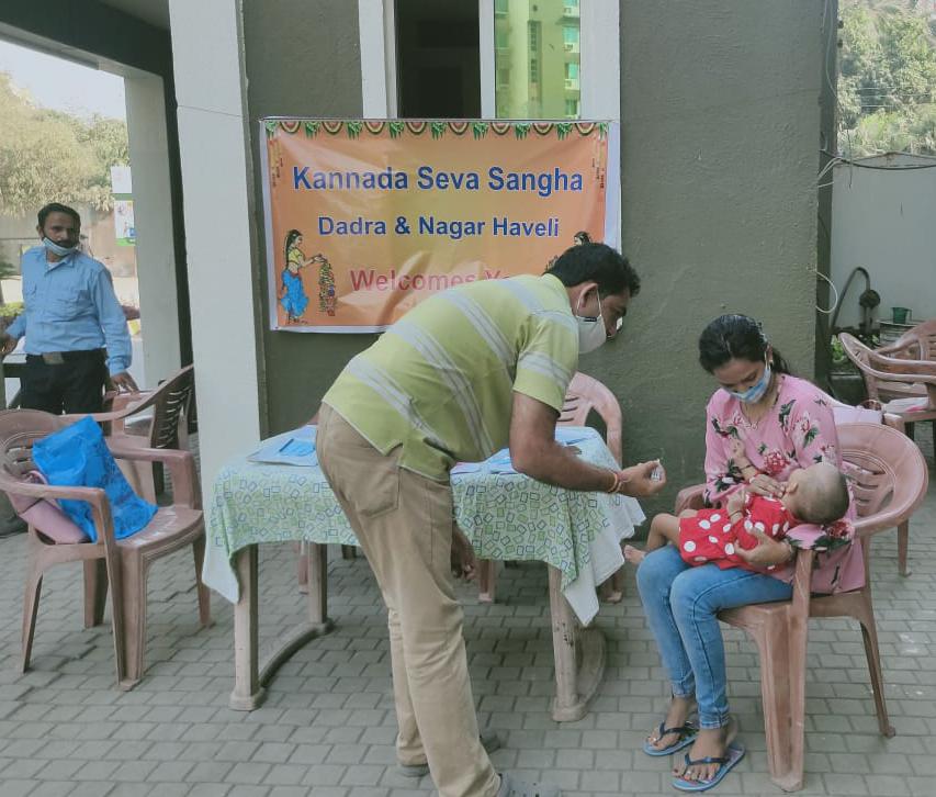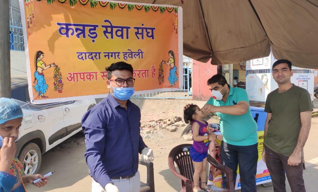 तपोवन,संजान:कन्नड़ सेवा संघ और कन्नड़ महिला संघ दादरा और नगर हवेली ने हर साल की तरह 27.02.2022, पोलियो रविवार को गार्डन सिटी समरवानी सिलवासा और खानवेल चार रास्ता में पल्स पोलियो कार्यक्रम आयोजित करने में चिकित्सा और स्वास्थ्य विभाग के साथ समन्वय किया।