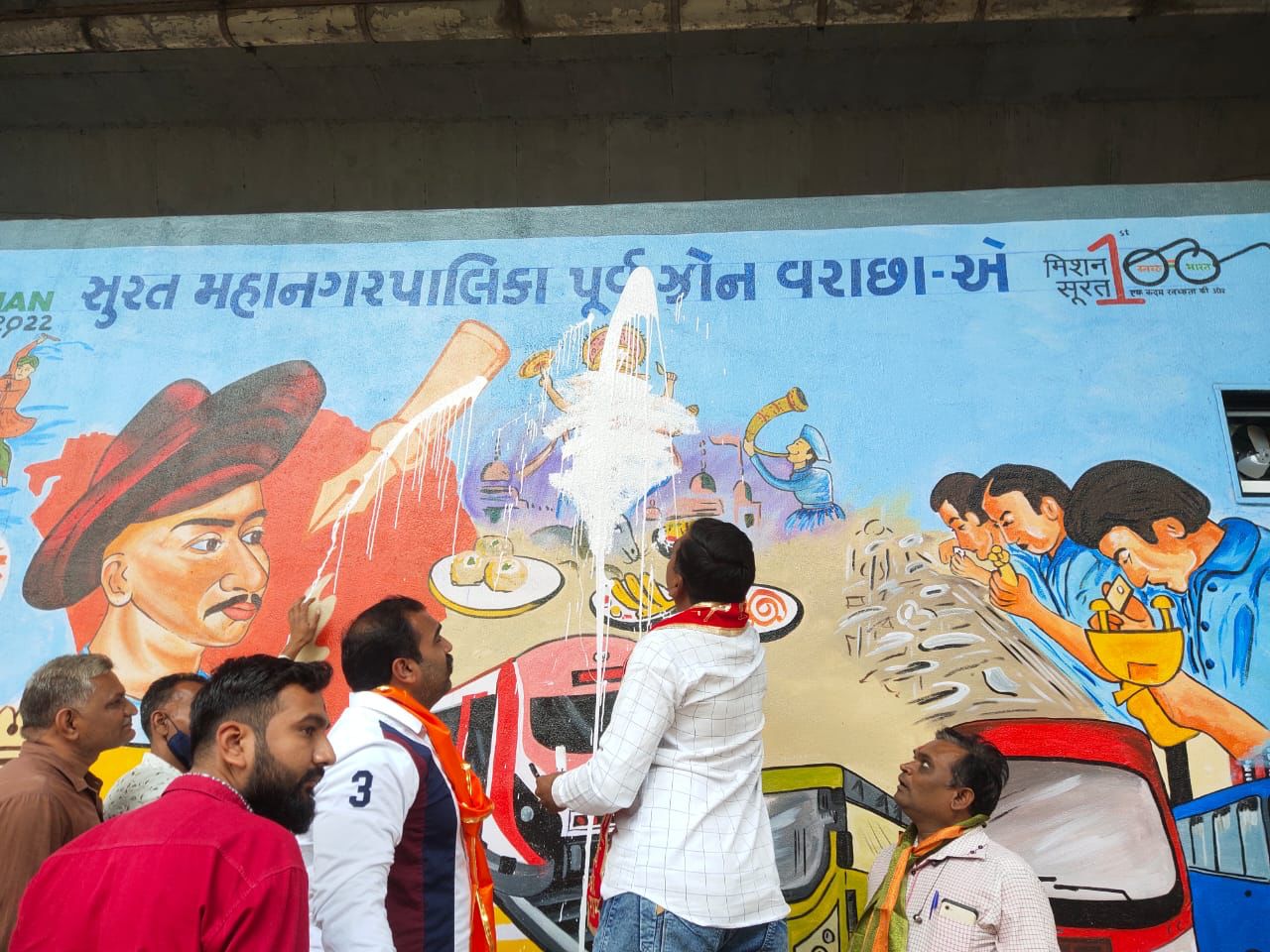 तपोवन,संजान:सूरत नगर निगम द्वारा कपोदरा चार रस्ता पे बने पे एंड यूज शौचालय पर गणपति का चित्र बनाया गया था। शौचालय की दीवार पर गणपति का चित्र बनाने से धार्मिक भावनाएं आहत हुईं. हिंदू संगठन ने इस प्रवृति का विरोध किया.विश्व हिंदू परिषद और बजरंग दल के कार्यकर्ताओ