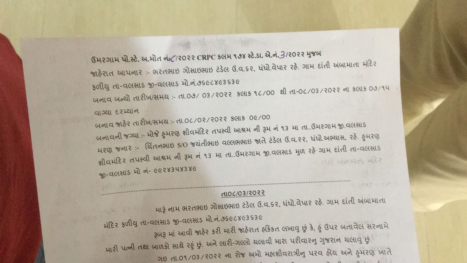 प्राप्त हुई माहिती के अनुसार यह घटना दि.07-03-2022 शाम 6 बजे से लेकर दि.08-03-2022 के सुबह 7:15 के बीच हुई है.