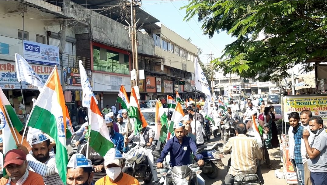 तपोवन, संजान : पंजाब में शानदार जीत के बाद आम आदमी पार्टी की ओर से आज वलसाड में तिरंगा रैली का आयोजन किया गया जिसमें बड़ी संख्या में आप कार्यकर्ता शामिल हुए साथ ही विधानसभा की सभी सीटों पर उम्मीदवार रखने की घोषणा गुजरात प्रभारी द्वारा की गई। आम आदमी पार्टी ने पंजाब राज्य में शानदार जीत के उपलक्ष्य में वलसाड शहर में बाइक रैली और पदयात्रा का आयोजन किया .जिसमें बड़ी संख्या में आम आदमी पार्टी के कार्यकर्ता शामिल हुए. इस कार्यक्रम में श्री मनोज सोरठिया गुजरात प्रदेश संगठन महामंत्री, दिल्ली के विधायक श्री गुलाब सिंह यादव उपस्थित थे उन्होंने कहा कि आम आदमी पार्टी गुजरात में सभी विधानसभा सीटों के लिए उम्मीदवार उतारेगी और साथ ही दिल्ली के सभी नेता गुजरात चुनाव में शामिल होंगे और गुजरात के सभी मुद्दों पर चुनाव लड़ेंगे। उधर, उन्होंने ईवीएम को लेते हुए कहा कि ईवीएम से चुनाव होने से कोई फर्क नहीं पड़ता, लेकिन 60% विवि पैट स्लीप की गणना की जानी चाहिए…अगर आम आदमी पार्टी को मौका मिलता है तो उनके विधायक गांधीनगर में बैठकर काम नहीं करेंगे, वे उस इलाके में रहकर काम करेंगे जहां से उनका विधायक है.