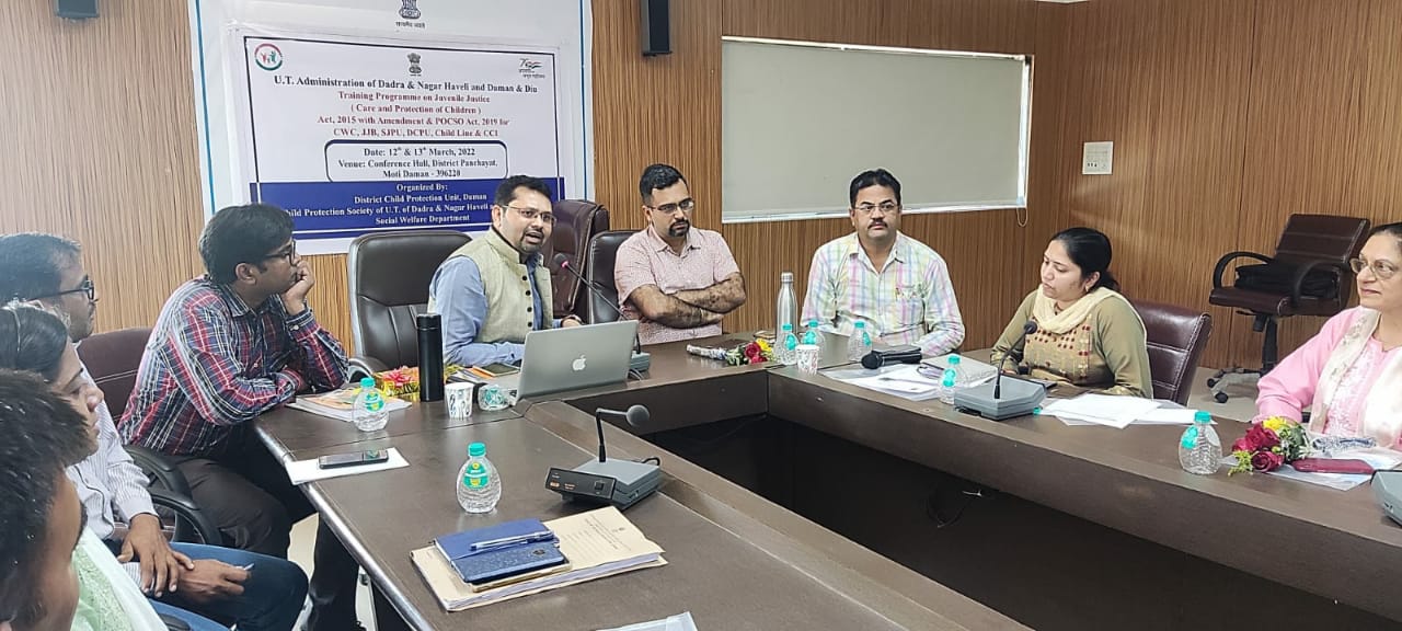 तपोवन, संजान: /समाज कल्याण विभाग, जिला बाल संरक्षण इकाई-दमण द्वारा किशोर न्याय (बालकों की देखरेख और संरक्षण) अधिनियम एवम बाल यौन शोषण के विरुद्ध कानून पर दो दिवसीय कार्यशाला का आयोजन किया गया | समाज कल्याण विभाग सचिव श्रीमती भानुप्रभा के मार्गदर्शन में एवं दमण जिला समाहर्ता डो.तपस्या राघव के दिशा निर्देश मे तथा निदेशक, समाज कल्याण विभाग श्री जतिन गोयल के नेतृत्व में किशोर न्याय (बालकों की देखरेख और संरक्षण) अधिनियम एवं बाल यौन शोषण के विरुद्ध अधिनियम से संबंधित कानून पर दो दिवसीय कार्यशाला का आयोजन दमण जिला पंचायत, सभागार में किया गया | इस कार्यशाला के संदर्भ मे निदेशक, समाज कल्याण विभाग श्री जतिन गोयल द्वारा देखभाल एवं संरक्षण की आवश्यकता वाले बच्चे, कानून के संघर्ष मे आनेवाले बच्चे ओर कानून के संपर्क मे आनेवाले बच्चों की विस्तृत व्याख्या देते हुए उन्होने कहाकी हमे इन बच्चों के बेहतरीन भविष्य को सुनिश्चित करना होगा | उन्होने विभाग की सराहना करते हुए कहा की जिला बाल संरक्षण इकाई-दमण द्वारा लगातार बच्चों के श्रेष्ठ हित एवं सुरक्षा के लिए श्रेष्ठ प्रयास किए जाते है और आगे भी जारी रहेगा | विशेष रूप यह भी कहा की हम सभी की ज़िम्मेदारी है की बच्चों के संबंधित कानून को समझ कर बच्चो के सहायक बने और बच्चो के साथ सौजन्य पूर्ण व्यवहार करे और उन्होंने कहाकी जरूरतमंद बच्चो की सुरक्षा हम सबकी ज़िम्मेदारी है | इस कार्यशाला मे रीसोर्सपर्सन बाल कल्याण समिति- दिल्ली के अध्यक्ष श्री.वरुन पाठक तथा प्रशिक्षक श्री.अरुनेन्द्र द्वारा किशोर न्याय(बालकों की देखरेख और संरक्षण)अधिनियम,2015,बाल यौन उत्पीड़न के विरूद्व संरक्षण संशोधन अधिनियम 2019, बाल स्वराज पोर्टल, ट्रैक ध मिसिंग चाइल्ड वेब पोर्टल के बारे मे विस्तृत जानकारी दी गई । साथ ही बाल संरक्षण से जुड़े हितधारक जैसे की बाल कल्याण समिति, किशोर न्याय बोर्ड, विशेष किशोर पुलिस इकाई, चाइल्ड लाइन, बाल गृह के कर्मचारीओ को उनकी भूमिकाएं और जिम्मेदारी के बारे में अवगत कराया गया। इस अवसर पर पुलिस विभाग के अधिकारियों एवं कर्मचारियों,बाल कल्याण समिति के अध्यक्ष एवम सदस्य तथा किशोर न्याय बोर्ड के सदस्य, बाल संरक्षण समिति की टीम, स्नेहालय बाल गृह की टीम और चाइल्ड लाइन की टीम की उपस्थिति रही |
