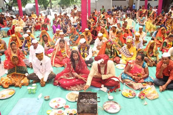तपोवन,सिलवास। खानवेल स्थित ताड़केश्वर महादेव मंदिर परिसर में 21 मई शनिवार को आदिवासी समाज उत्कर्ष संघ का 11वां समूह लग्नोत्सव विधि-विधान से विद्वान पंडितों द्वारा संपन्न कराया गया। विवाह आयोजन में जोड़े परिणय सूत्र में बंधे। आयोजन के बाद महाप्रसाद का वितरण भी किया गया, जिसे वर-वधू सहित हजारों लोगों ने ग्रहण किया। कार्यक्रम के मुख्य अतिथि नारायण ठक्कर एवं राजकुमार दहिया थे।