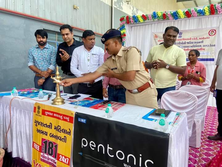 तपोवन,संजान:लिंक पेन कंपनी, दहेरी गॉव में कार्यालय आयुक्त, महिला एवं बाल विकास, गांधीनगर,महिला कानूनी जागरूकता शिबिर का आयोजन महिला यौन उत्पीड़न अधिनियम-2013 के तहत कार्यस्थल पर किया गया।