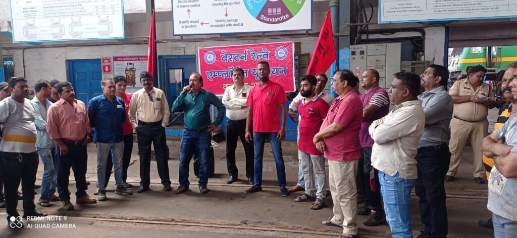 तपोवन, संजान : ओल इंडिया रेलवेमेन्स फेडरेशन के आह्वान पर वेस्टर्न रेलवे एमप्लोइज यूनियन, मुंबई डिविजन के डिविजनल सेक्रेटरी प्रशांत कानडे के नृतत्व में समग्र मुंबई मंडल में और वलसाड के लोको शेड में ‘मांग दिवस’ मनाया गया।