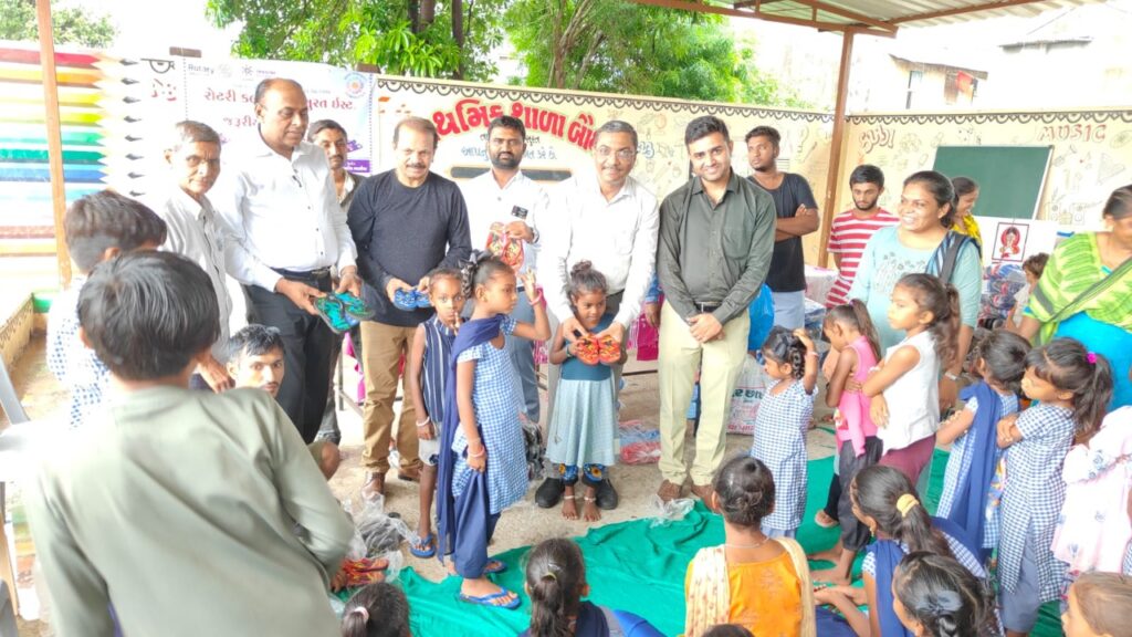 रोटरी क्लब सूरत ईस्ट द्वारा दि.12-07-2022 को बोधन गाँव मे स्थित प्राथमिक स्कूल के बच्चों के लिए चप्पल वितरण का कार्यक्रम आयोजित किया गया था,इस बारे में माहिती देते हुए प्रोजेक्ट चेयरमैन डॉ.जगदीश वघासीया ने बताया कि पिछले जून महीने में लिटरसी मिशन के अनुसंधान में बोधान प्राथमिक स्कूल में नोटबुक वितरण का कार्यक्रम किया था तब स्कूल की आचार्या पायल बहन द्वारा बच्चो को चप्पल की जरूरत की जानकारी दी थी,इसलिए रोटरी द्वारा आयुर्वेद कॉलेज के आर.एम.ओ.वैद्य संजयभाई वर्मा के अनुदान से स्कूल के तमाम 328 जितने बच्चो को चप्पल वितरित की गई।