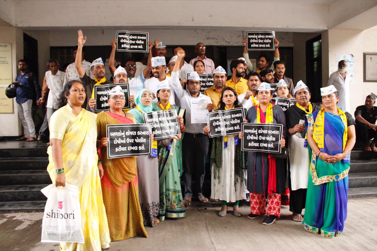 तपोवन, संजान : सूरत की सरकारी स्कूल में हुए जघन्य अपराध की जानकारी काफी लंबे वक्त से प्रशासन को दी हुई है लेकिन उसके बावजूद भी प्रशासन के द्वारा कोई कड़े कदम नहीं उठाए गए। इसके चलते आम आदमी पार्टी ने यह फैसला किया कि जिला बाल सुरक्षा आयोग को भी इस बात की जानकारी दी जाए और सरकार के ऊपर दबाव बनाया जाए ताकि जल्द से जल्द अपराधी आचार्य के खिलाफ कड़े कदम उठाए गए। इसके चलते ही आज आम आदमी पार्टी के राष्ट्रीय परिषद सदस्य राकेश हिरपरा की अगुवाई में आम आदमी पार्टी महिला विंग के द्वारा पूरे सबूतों के साथ जिला बाल सुरक्षा अधिकारी से मिलकर फरियाद दाखिल की है। 3 दिन पहले आम आदमी पार्टी के द्वारा एक प्रेस कॉन्फ्रेंस करके इस सरकारी स्कूल में आचार्य के द्वारा बच्चों का यौन शोषण हो रहा है इसकी जानकारी दी गई थी। सबसे बड़ी बात यह है कि इस घटना के बारे में पीड़ित बच्चे के मां बाप 3 महीने से मदद की गुहार लगा रहे हैं और इसके लिए गांधीनगर से लेकर भाजपा के कमलम कि ऑफिस तक कई बार धक्के खा चुके हैं लेकिन किसी ने भी इन को न्याय दिलाने के लिए कोई कदम नहीं उठाए। हमारा मानना है कि कहीं ना कहीं कहीं ना कहीं, शिक्षा के मंदिर में अपराध करने वाले हैवान को भाजपा बचा रही है। इससे पहले शनिवार 16 जुलाई को कमिश्नर के साथ मुलाकात में, उन्होंने सख्ती से कहा कि “हम शिकायत तभी दर्ज करेंगे जब कोई निगम, समिति या अभिभावक शिकायतकर्ता बन जाएगा। राकेश हिरपरा या आम आदमी पार्टी तीसरे पक्ष के रूप फरयादी बनना चाहे तो हम वैसे फ़रियाद दाखिल नहीं कर सकते।” लेकिन आम आदमी पार्टी पीड़ित परिवार के साथ हैं और हम पूरी कोशिश करेंगे कि उस हैवान आचार्य को कड़ी से कड़ी सजा मिले और पीड़ित बच्चे को न्याय मिले। हमने कमिश्नर को भी आवेदन पत्र दिया था लेकिन अभी तक इस मामले में कोई प्रगति नहीं दिख रही। लेकिन हमें आशा है कि जिला बाल सुरक्षा अधिकारी के द्वारा इस मुद्दे पर संज्ञान लिया जाएगा और सरकार पर दबाव बनाया जाएगा कि अपराधी के खिलाफ कड़ी कार्यवाही हो और बच्चे को न्याय मिले।