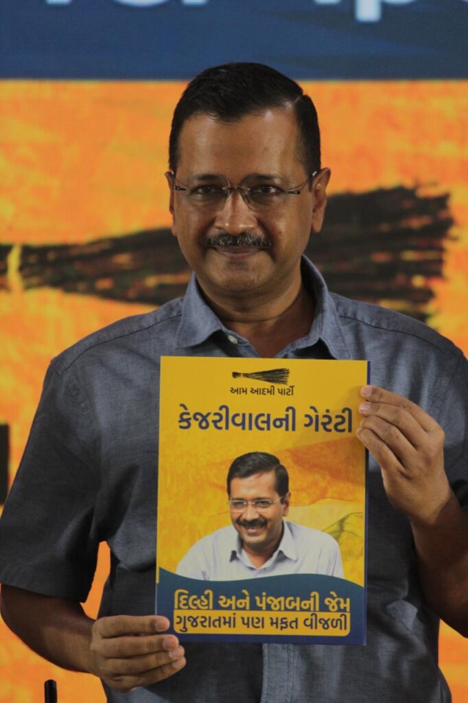 तपोवन, संजान : आम आदमी पार्टी के राष्ट्रीय संयोजक और दिल्ली के मुख्यमंत्री अरविंद केजरीवाल 20 जुलाई, रात को सूरत एयरपोर्ट पहुंचे। एयरपोर्ट पर आम आदमी पार्टी के प्रदेश अध्यक्ष गोपाल इटालिया, फ्रंटल ऑर्गेनाइजेशन प्रमुख किशोर देसाई और साथी नेता और कार्यकर्ताओं ने अरविंद केजरीवाल जी का जोरदार स्वागत किया। और रात को अरविन्द जी ने प्रदेश के नेताओं के साथ संगठन पर अहम चर्चा की। उसके बाद आज 21 जुलाई को 1 बजे अरविंद केजरीवाल जी सूरत के समस्त पाटीदार समाज हॉल (कतारगाम) पहुंचे और गुजरात के लिए पहली गारंटी की घोषणा करते हुए कहा की पिछले 2 महीनों से मुझे कई बार गुजरात आने का अवसर मिला है। और जब भी गुजरात आया मुझे गुजरात के लोगों का ढेर सारा प्यार मिला है, उसके लिए मैं गुजरात के लोगों का आभारी हूं. गुजरात में 27 साल हो गए हैं, सिर्फ एक पार्टी ने राज किया है, बीजेपी 27 साल राज करने के बाद घमंडी हो गई है, अब बीजेपी के पास कोई नया आइडिया नहीं है कि अब क्या करना है, बस जो करना था कर लिया हैं। लेकिन, अब गुजरात बदलाव चाहता है। हम पिछले कई महीनों से गुजरात का दौरा कर रहे हैं, लोगों से मिल रहे हैं, लोगों की समस्याएं सुन रहे हैं, गुजरात के लोगों की आवाज सुनकर हमें पता चला है कि गुजरात में बिजली बहुत महंगी है, यहां के लोग महंगे बिजली बिलों से काफी ज्यादा परेशान हैं दिन-ब-दिन महंगाई बढ़ती जा रही है, लेकिन किसी की आमदनी नहीं बढ़ रही है। गुजरात में लोगों के लिए अपना घर चलाना मुश्किल हो गया है, इन सब महंगाई के बीच लोगों के लिए सबसे मुश्किल चीज बिजली की बढ़ती कीमत हैं। गुजरात के लोगों ने मुझे बताया कि दिल्ली में बिजली मुफ्त है, अब 1 जुलाई से सरकार बनने के बाद सिर्फ 3 महीने में पंजाब में भी बिजली मुफ्त हो गई है, अब हम गुजरात में भी मुफ्त बिजली चाहते हैं। गुजरात के लोगों का सम्मान करते हुए, उनकी सबसे बड़ी समस्या को सुनकर, हम बिजली के मुद्दे पर पहली गारंटी लेकर आए हैं।. कई पार्टियां आकर कहती हैं कि हमारे पास घोषणा पत्र है, हमारे पास प्रतिज्ञा पत्र है, लेकिन चुनाव के बाद वो लोग जनता के लिए कुछ नहीं करते, उनके प्रतिज्ञा पत्र कहीं न कहीं कूड़ेदान में मिलते है। अगर हम उन पार्टी के द्वारा किए गए वादों के बारे में पूछें तो वे कहते हैं कि यह सिर्फ एक चुनावी जुमला था। लेकिन हम वोट की राजनीती नहीं करते। हम जो कहते हैं वही करते हैं, हम जो अंदर से हैं वैसे ही हम बाहर से हैं, इसलिए हम गुजरात के लोगों के लिए गारंटी लेकर आए हैं। जैसे अगर किसी सामान की गारंटी है और अगर वह खराब निकला तो पैसे वापस मिलते है वैसे ही अगर हम अपनी गारंटी पूरी न कर पाए तो हमको दुबारा वोट मत देना। केजरीवाल जी ने आगे कहा कि बिजली की गारंटी सिर्फ वादे नहीं है, ये वो सच है जो हमने दिल्ली और 
