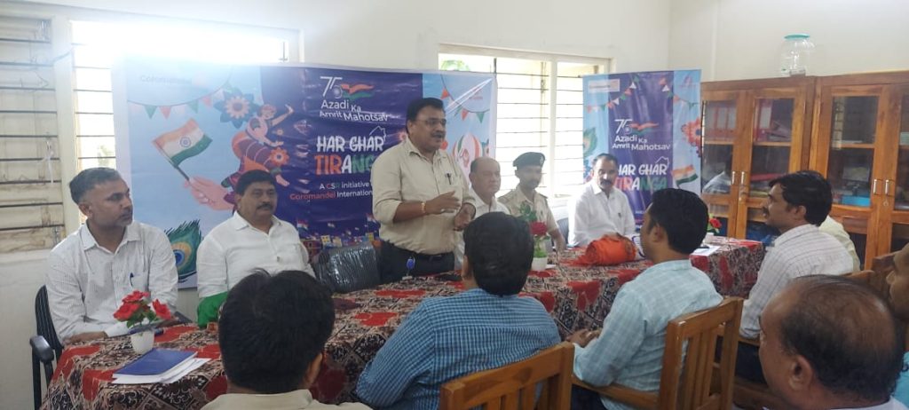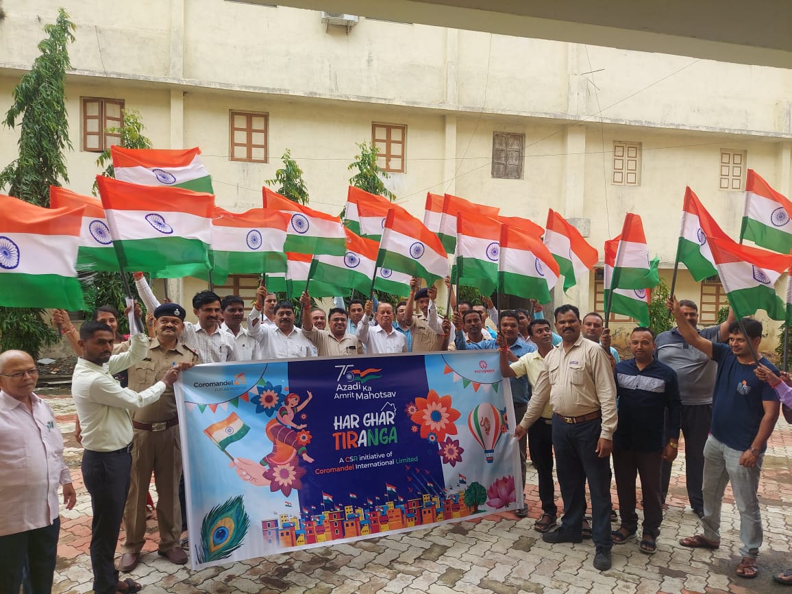 कार्यक्रम में कोरोमंडल इंटरनॅशनल लिमिटेड के हेड एच्.आर अनिलभाई प्रजापति ने बताया कि,हमारी कंपनी आज 56 जितनी स्कूलों में तिरंगा बात रही है इसके पीछे का उद्देश्य यह है कि स्कूलों के सभी छात्रों में देशभक्ति की भावना जागृत हो।