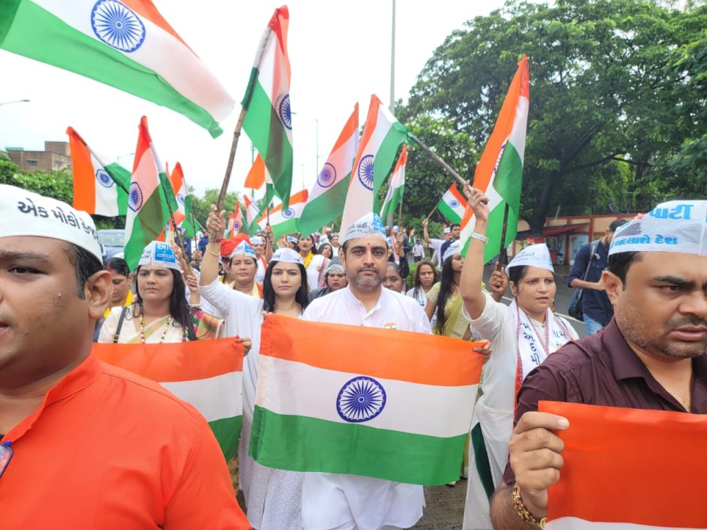 आम आदमी पार्टी ने राजकोट शहर में आम आदमी पार्टी के राजकोट शहर अध्यक्ष चेतनभाई कामाणी के नेतृत्व में पर्णकुटी सोसाइटी ग्राउंड से सूर्यमुखी हनुमानजी मंदिर, नानमौवा मेन रोड से त्रिकोण बाग तक तिरंगा यात्रा निकाली थी।