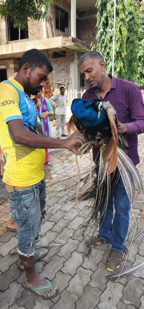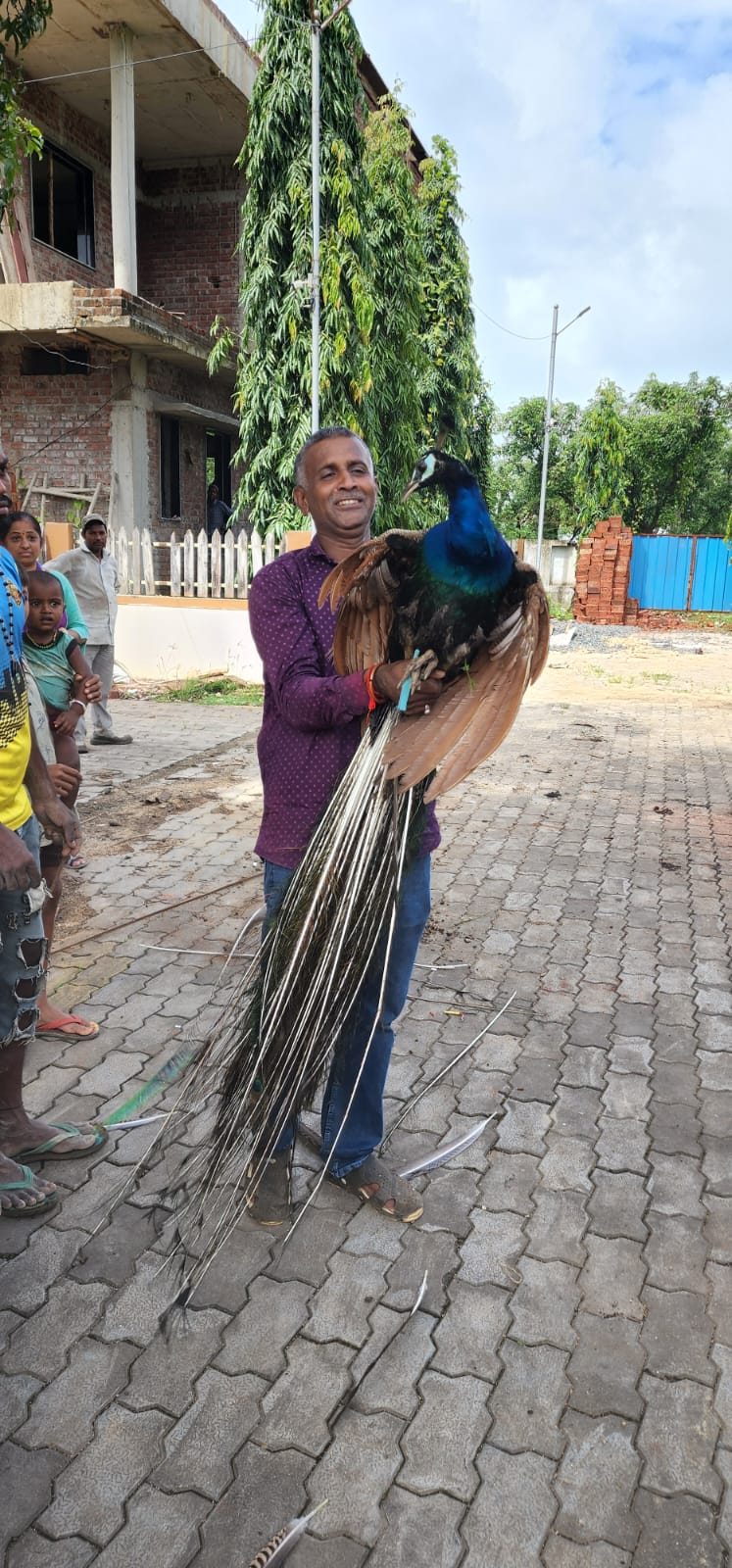 तपोवन, संजान : जैनों के पर्युषण महापर्व के दूसरे दिन की सुबह,उमरगाँव तालुका के बोनपाड़ा क्षेत्र में “भानुविला” रो-हाउस से निकिताबहन प्रजापति द्वारा जानकारी दी गई।श्री हिंसा निवारण संघ सरीगाँव भिलाड अध्यक्ष,वलसाड जिला विश्व हिंदू परिषद गौ संरक्षण अध्यक्ष मानद पशु भारत सरकार के पशुकल्याण अधिकारी अंकितभाई शाह को निकिताबेन प्रजापति का फोन आया कि एक राष्ट्रीय पक्षी मोर घायल है और गर्दन की समस्या से पीड़ित है, जिसके कारण उड़ना मुश्किल है, अंकितभाई ने तुरंत वन विभाग के अधिकारियों को सूचित किया पर कोई भी अधिकारी उपलब्ध नहीं था,वह सभी तालुका स्तर पर वन उत्सव कार्यक्रम में गए थे ऐसी जानकारी प्राप्त हुई।