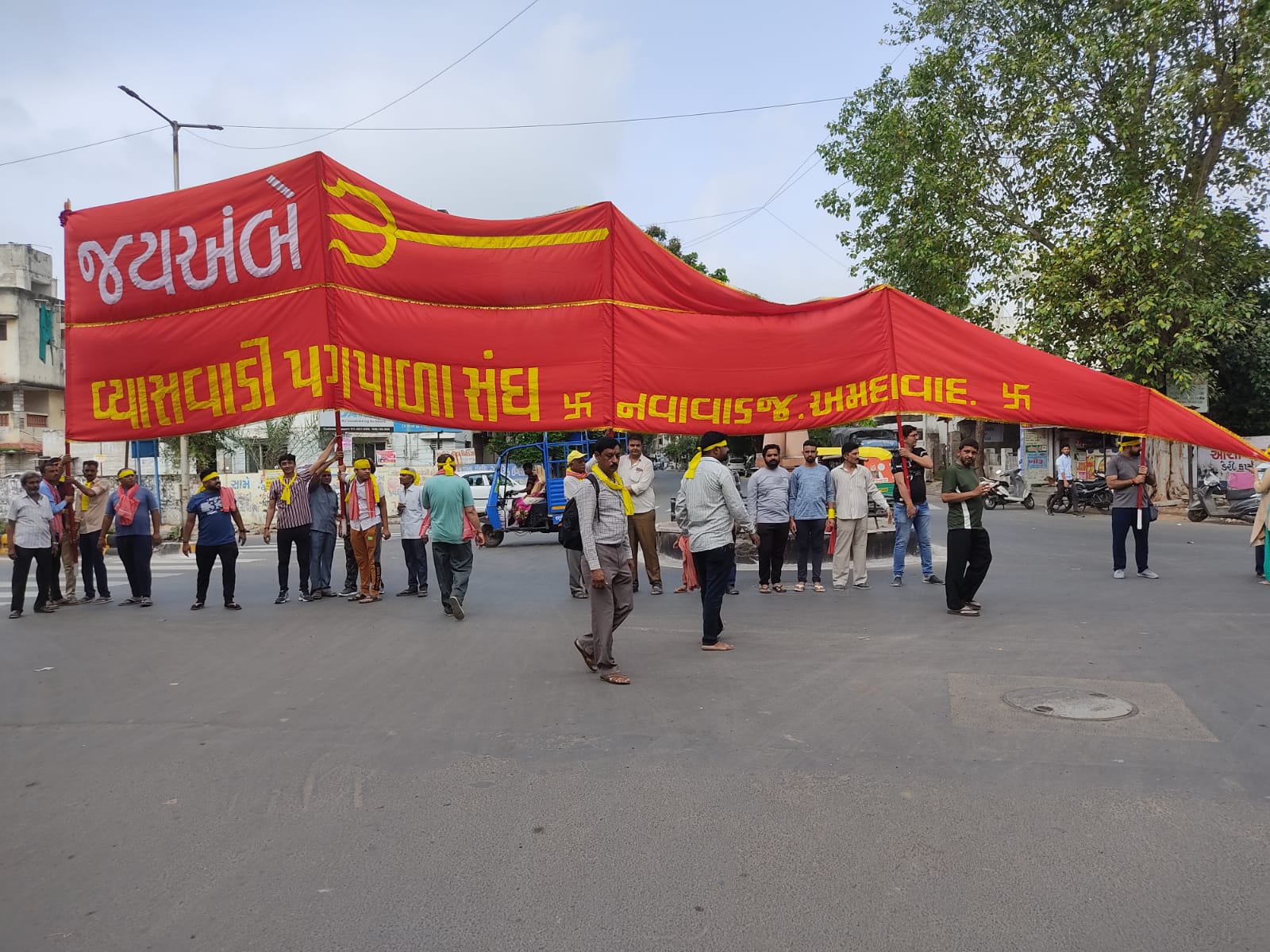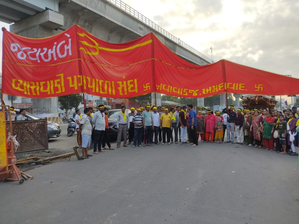 गुजरात के अहमदाबाद के नवा वाडज में व्यासवाडी पैदल संघ आशीषभाई शर्मा और राजूभाई पटेल की योजना और समन्वय समिति के माध्यम से, पिछले 29 वर्षों से लगातार हर साल 52 गज के ध्वज के साथ अंबाजी में माता रानी के दर्शन के लिए आयोजन कर रहा है। आज यह संघ आरती और गरबा के साथ अंबाजी के लिए रवाना हुआ। इस संघ में जुड़े करीब 130 सदस्य पैदल अंबाजी पहुंचते हैं और माता की उपस्थिति में ध्वज को चढ़ाया जाता है। कोरोना के कठिन समय में भी इस संघ ने लगातार 52 गज के ध्वज को मातारानी के मंदिर पर चढ़ने की परंपरा को कायम रखा है। मातारानी के लाखों भक्त भादरवी पूनम में माँ अम्बा के दर्शन करेंगे और अपने आप को धन्यता महसूस करेंगे। माता रानी आप सब की मनोकामनाएं पूर्ण करें यही प्रार्थना है।