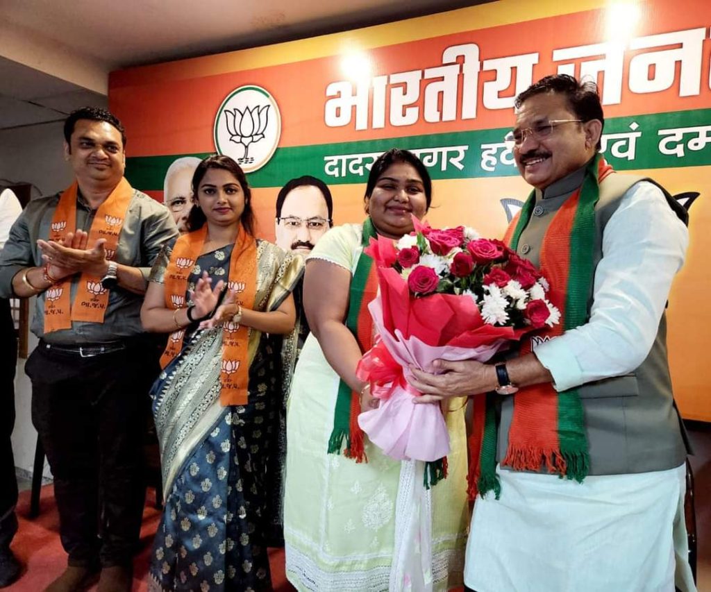 तपोवन, संजान : संघ प्रदेश दादरा नगर हवेली एवं दमन दीव भारतीय जनता पार्टी के प्रदेश कार्यालय “अटल भवन” में आयोजित एक कार्यक्रम में सामरवरणी ग्राम पंचायत के सरपंच श्रीमती कृतिका बहन बारात एवं अन्य एक सदस्य ने केन्द्रीय संचार राज्यमंत्री देवसिंह चौहाण की उपस्थिति में भाजपा का खेस धारण किया।