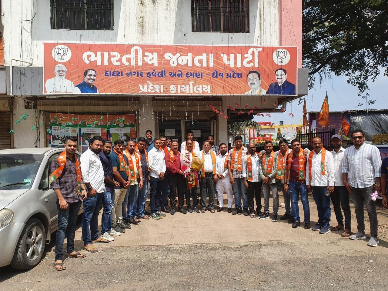 नवनियुक्त श्री अमृत भाई का पुष्पगुच्छ से स्वागत किया गया।इस अवसर पर पूर्व प्रदेश अध्यक्ष श्री बी एम माछी, श्री महेश अगरिया,दमन ज़िला पंचायत के अध्यक्ष श्री नवीन भाई पटेल,विमल पटेल,जयेश पटेल,अनिल पटेल एवं किरीट दमनीया उपस्थित रहे।
