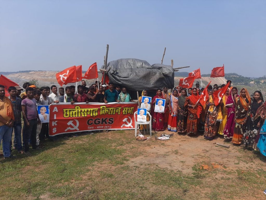तपोवन, संजान : । रोजगार और पुनर्वास की मांग पर विस्थापन प्रभावित गांवों के किसानों ने एक और तंबू गाड़ दिया है। आज राष्ट्रपिता महात्मा गांधी की जयंती के दिन एसईसीएल के गेवरा परियोजना के अंतर्गत नरईबोध के पास छत्तीसगढ़ किसान सभा के नेतृत्व में ग्रामीणों ने अनिश्चितकालीन सत्याग्रह आंदोलन शुरू कर दिया है। इसके पहले सभी ग्रामीणों ने गांधी जी की तस्वीर पर पुष्पांजलि अर्पित करके उन्हें अपनी श्रद्धांजलि दी तथा उनके दिखाए रास्ते पर चलते हुए देश की आजादी, एकता और भाईचारे की रक्षा करने शपथ ली।
