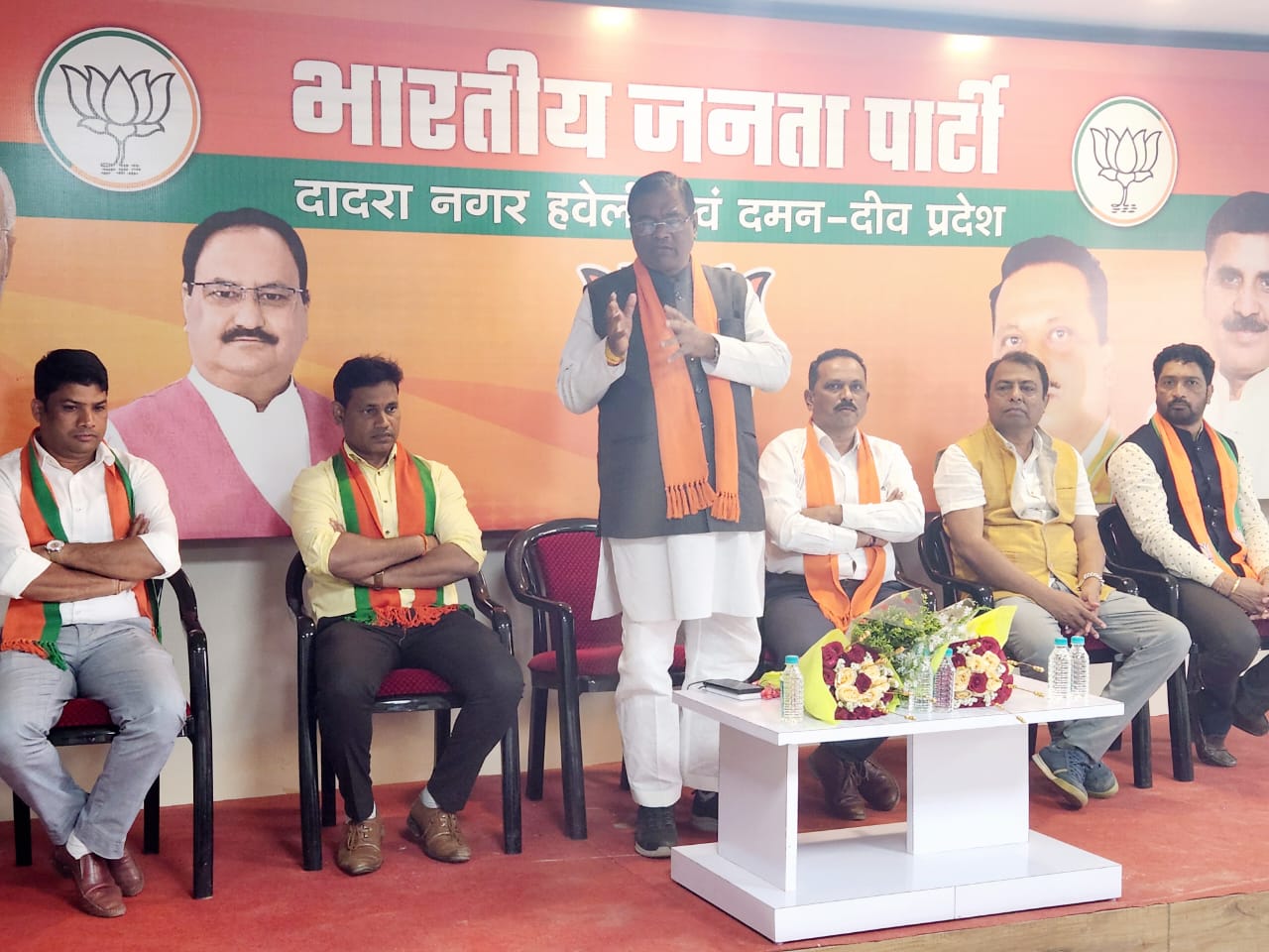 अटल भवन में आयोजित बैठक में अन्य उपस्थित लोगों में संगठन महामंत्री श्री विवेक दाढकर जी, प्रदेश महामंत्री श्री मनीष देसाई, महेश गावित, प्रदेश उपाध्यक्ष श्री हितेश लाड, महेश अगरिया, श्री धर्मेश सिंह चौहान, कोषाध्यक्ष वीरेन्द्र राजपुरोहित, अनुसूचित जनजाति मोर्चा के प्रदेश अध्यक्ष श्री रमेशभाई कडू, जीतूभाई माढा सेलवास जिला ग्रामीण अध्यक्ष श्री राजेशभाई वरठा,दानह जिला पंचायत उपाध्यक्ष श्री दीपक प्रधान, मसाट मंडल अध्यक्ष एवं एसटी मोर्चा सोशल मीडिया के प्रदेश समन्वयक श्री अश्विन पटेल , अनुसूचित जनजाति मोर्चा के राज्य सचिव श्री सुमन वर्था, दानह जिला पंचायत सदस्य श्री भगू भाई पटेल, श्री विपुल भुसारा, श्री रविभाई पटेल, श्रीमती रेखा बेन पटेल, श्री जयेश वरठा व्यापारी एसोशिएशन के अध्यक्ष श्री शांतु भाई पुजारी, उत्तर भारतीय प्रकोष्ठ के प्रदेश अध्यक्ष द्वारकानाथ पाण्डेय उपस्थित थे।