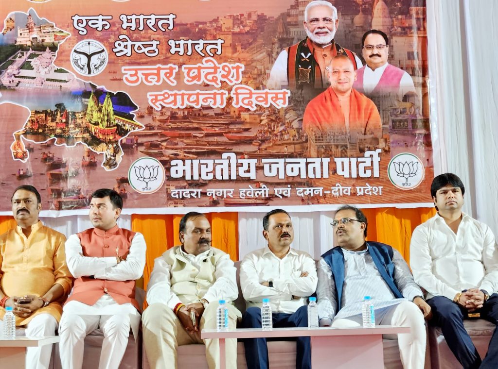 तपोवन, संजान :संघ प्रदेश दादरा नगर हवेली एवं दमन दीव प्रदेश भाजपा द्वारा प्रदेश भाजपा अध्यक्ष दीपेश टंडेल के दिशा निर्देश पर प्रदेश उपाध्यक्ष प्रियांकसिंह परमार के नेतृत्व में एक भारत श्रेष्ठ भारत के अंतर्गत आज सामरवरनी पंचायत हॉल में उत्तर प्रदेश दिवस कों धूमधाम से आयोजित किया गया। इस कार्यक्रम का शुभारंभ मुख्य अतिथि के तौर पर उपस्थित महामना मालवीय मिशन के संगठन महामंत्री डॉ वेद प्रकाश सिंह एवं अन्य महानुभावों द्वारा दीप प्रज्वलित कर किया गया। इस अवसर पर अतिथि विशेष के रूप में अमरजीत मिश्रा,आचार्य पवन त्रिपाठी,राम कुमार पाल,ओम प्रकाश दुबे,अमितसिंह राजपूत,बबलू सिंह ,ज्ञानमूर्ति शर्मा, नागेंद्र तिवारी खास तौर पर उपस्थित रहे थे। इस दौरान इस कार्यक्रम में शिव तांडव सहित रामलीला के कुछ झांकी उपस्थित मेहमानों के समक्ष दर्शाया गया था। इस कार्यक्रम के दौरान संघ प्रदेश दादरा नगर हवेली और दमन दिव के उत्तर भारतीय समाज से विभिन्न क्षेत्रों में उत्कृष्ट कार्य करने वाले लोगों को पुरस्कार देकर सम्मानित किया गया। इस मौके पर इस कार्यक्रम के संयोजक प्रियांकसिंह परमार ने कहा कि उत्तर प्रदेश सांस्कृतिक धरोहरों, राजनैतिक, व आर्थिक दृष्टि से सम्पूर्ण भारत में अपना अदभुत स्थान रखता है और आज के दिन सभी नागरिकों को संकल्प लेना चाहिए कि वह देश एवं प्रदेश की प्रगति के लिए आगे आकर अपना पूर्ण योगदान करें। एक भारत श्रेष्ठ भारत के इस भव्य कार्यक्रम को सफल बनाने में मुख्य संयोजक प्रियांकसिंह परमार एवं सहसंयोजक अनिल दिक्षित के साथ द्वारकानाथ पांडे,विशाल सिंह, सुधीर पाठक, मानिकचंद तिवारी, महेश शर्मा,संदीप तिवारी सहित अन्य उत्तर भारतीय समाज के लोगों ने अपनी बड़ी महत्वपूर्ण भूमिका निभाई।