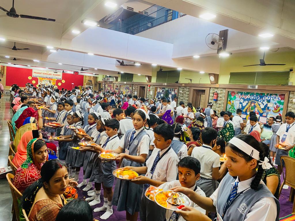 तपोवन, संजान: 12 फरवरी । पूज्य संत श्री आशारामजी बापू की पावन प्रेरणा से श्री योग वेदांत सेवा समिति, सिल्वासा के तत्वावधान में प्रभात स्कॉलर्स एकेडमी में आज मातृ-पितृ पूजन कार्यक्रम का आयोजन किया गया जिसमें बच्चों ने अपने माता-पिता व अभिभावकों का विधिवत वैदिक मंत्रोच्चार के साथ पूजन किया और उनकी आरती उतारकर परिक्रमा की तथा उन्हें प्रसाद खिलाया एवं माता-पिता ने अपने बच्चों से स्नेह किया ।