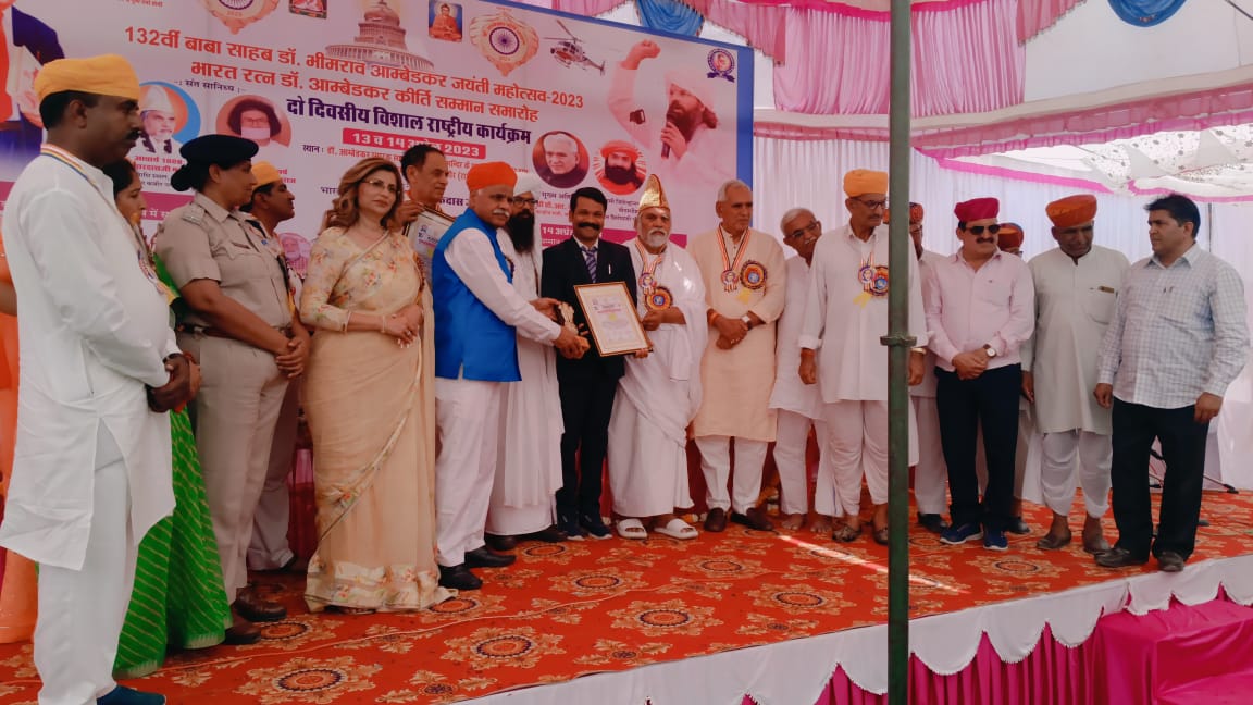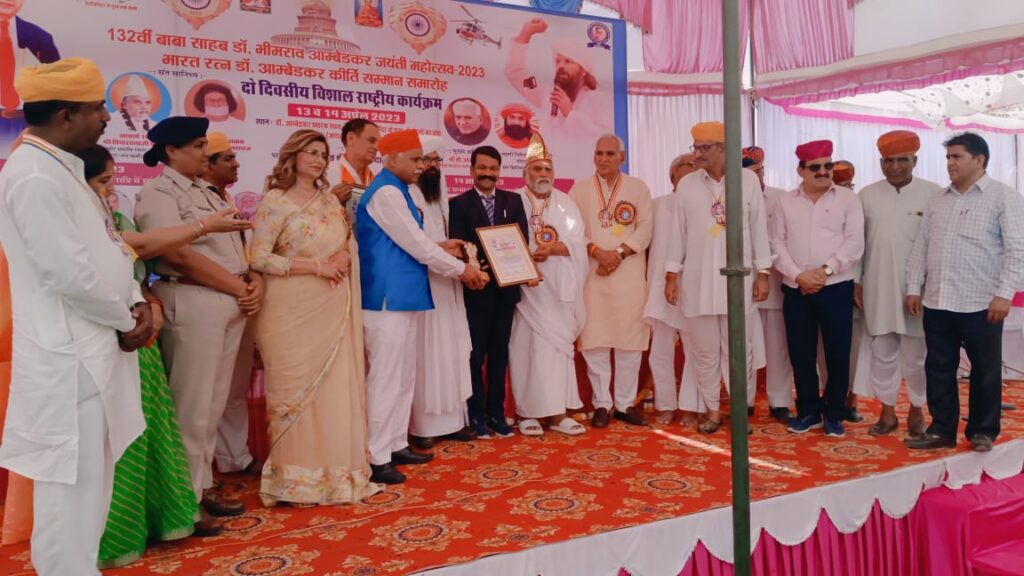 “भारत रत्न डॉक्टर अंबेडकर”कीर्ति सम्मान समारोह कार्यक्रम में मुख्य अतिथि सत साहेब श्री सी.आर. चौधरी जी पूर्व केंद्रीय मंत्री भारत सरकार, अध्यक्षता कर रहे पंडित तिलक राज शर्मा मेमोरियल ट्रस्ट संयुक्त राष्ट्र संघ अमेरिका से श्री इंद्रजीत शर्मा जी अति विशिष्ट अतिथि प्रो. डॉ. परिन सोमानी जी