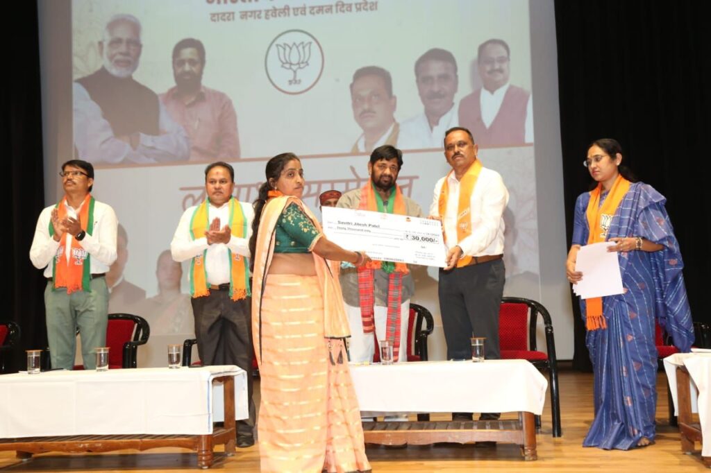 आज माननीय मंत्री जी के करकमलों द्वारा सिलवासा में प्रधानमंत्री मुद्रा लोन योजना और पीएम स्वनिधि योजना के लाभार्थियों को चेक वितरित किया।