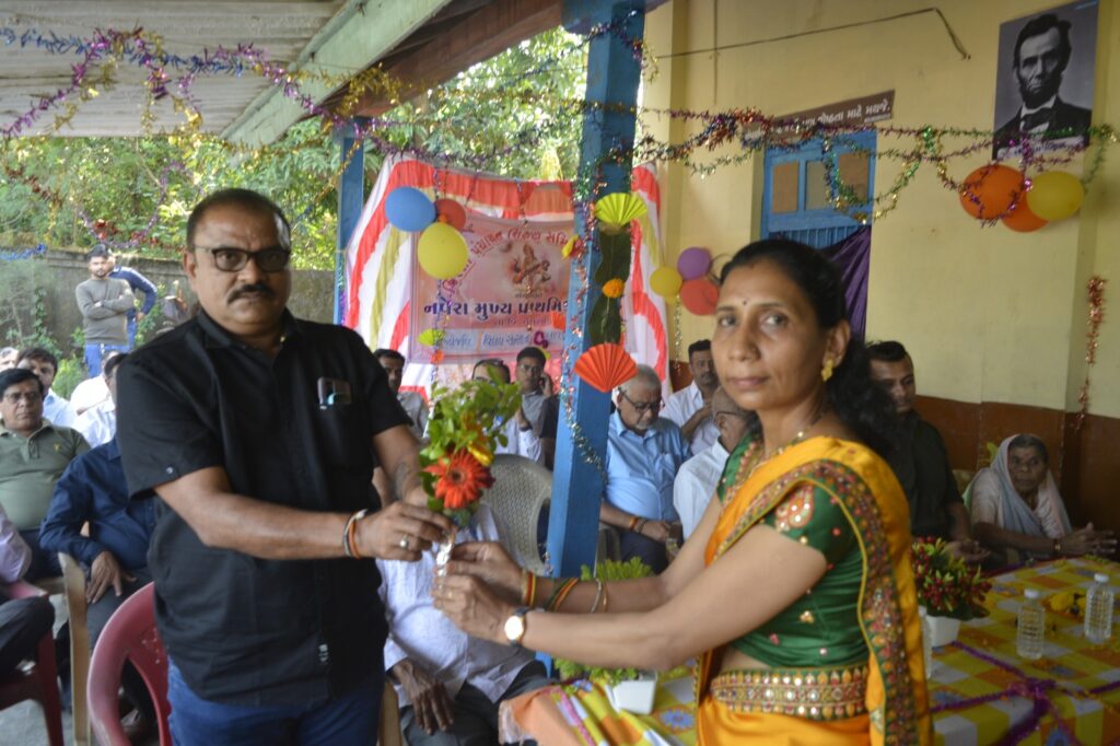 स्वर्गीय शिलाबेन हरेन्द्रसिंह सोलंकी के प्रथम पुण्यतिथि के अवसर पर वलसाड़ जिला के नवेरा पंचायत में स्थित प्राथमिक शाला में स्कूली बच्चों को तिथि भोजन कराया गया। यह आयोजन स्वर्गीय शिलाबेन सोलंकी के याद में उनके पति हरेन्द्रसिंह सोलंकी एवं उनके पुत्र शिवशक्ति इंडस्ट्रीज के मैनेजिंग डायरेक्टर धवलसिंह सोलंकी द्वारा रखा गया था,,आपको बता दें कि स्वर्गीय शिलाबेन सोलंकी का जन्म इसी नवेरा गांव में हुवा था और उन्होंने इसी स्कूल से अपनी शिक्षा हासिल की थी,, वर्षो पुराने इस स्कूल में विद्यार्थियों के लिए मूलभूत सुविधाओं की कमी है,,जिसमे विद्यार्थियों तथा स्कूल प्रबंधन की सबसे बड़ी परेशानी पीने के शुद्ध पानी का था जिसको ध्यान में रखते हुवे हरेन्द्रसिंह सोलंकी एवं शिवशक्ति इंडस्ट्रीज द्वारा पेय जल की मशीन स्कूल परिषर में लगाया गया, और सभी स्कूली बच्चों को वॉटर बॉटल दी गई । कार्यक्रम की शुरुआत दीप प्रज्वलित कर किया गया जिसके बाद स्व शिलाबेन सोलंकी को याद करते हुवे सभी ने मौन रहकर उनको श्रद्धांजलि दी। स्कूल के बच्चों ने इस मौके पर अतिथियों का स्वागत गीत से अभिवादन किया जिसके पश्चात सभी ने तिथि भोजन का लाभ लिया। आज के इस कार्यक्रम में स्कूल में उपस्थित गणमान्य नागरिक,चुने गये जनप्रतिनिधि, स्कूल के स्टाफ,तथा विद्यार्थियों की उपस्थिति रही। नवेरा पंचायत के सरपंच श्रीमती वर्षाबेन विजयसिंह ठाकोर ने शिवशक्ति इंडस्ट्रीज के तरफ से किये गए इस सराहनीय योगदान के लिए धन्यवाद ज्ञापित किया साथ ही साथ उन्होंने लोगों से इस स्कूल के बच्चों के शिक्षा में सहायक बनने के लिए अपील भी की है।
