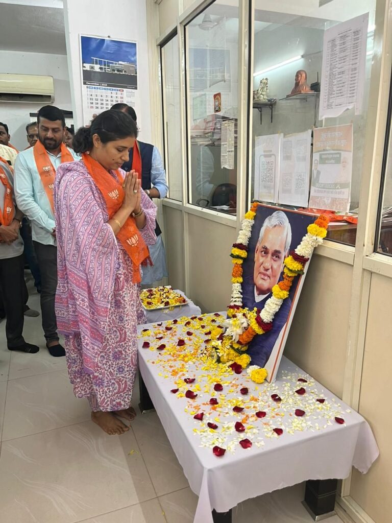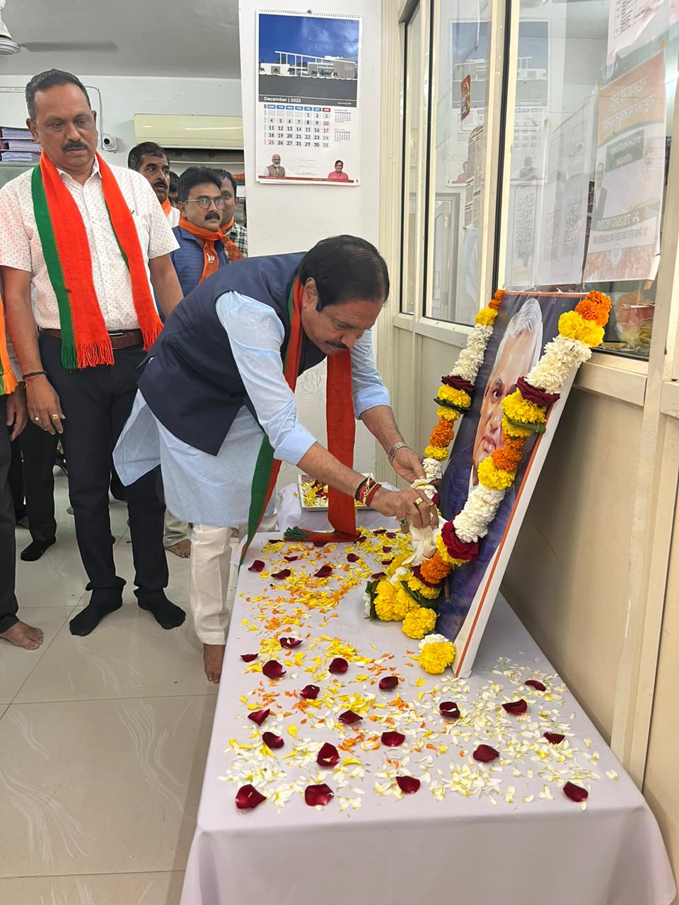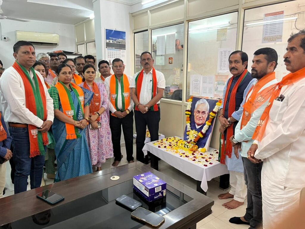 तपोवन,संजान:पूर्व प्रधानमंत्री भारत रत्न स्वर्गीय अटल बिहारी वाजपेयी जी की जन्मजयंती के अवसर पर भारतीय जनता पार्टी दादरा नगर हवेली एवं दमण दिव प्रदेश के अध्यक्ष श्री दीपेश टंडेल जी के नेतृत्व में प्रदेश कार्यालय नानी दमण पर एक कार्यक्रम आयोजित हुआ जिसमे उपस्थित सभी कार्यकर्ता एवं अन्य महानुभावों द्वारा अटल जी को पुष्पांजलि अर्पित की गई।