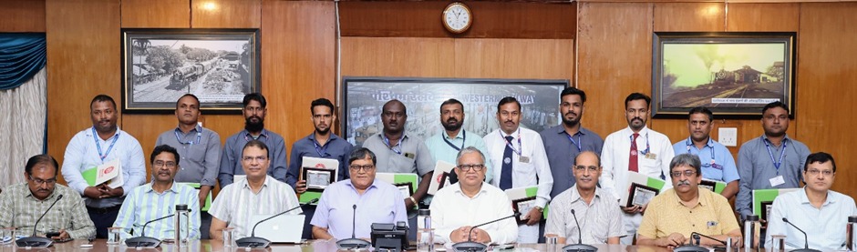 पश्चिम रेलवे के महाप्रबंधक श्री अशोक कुमार मिश्र, अपर महाप्रबंधक एवं प्रमुख विभागाध्यक्ष संरक्षा पुरस्कार विजेताओं के साथ दिखाई दे रहे हैं।_पश्चिम रेलवे के महाप्रबंधक श्री अशोक कुमार मिश्र ने पश्चिम रेलवे के 12 कर्मचारियों को सुरक्षित ट्रेन परिचालन में उत्कृष्ट कार्य निष्पादन के लिए प्रधान कार्यालय, चर्चगेट में सम्मानित किया। इन कर्मचारियों को मई तथा जून, 2024 के दौरान ड्यूटी में उनकी सतर्कता तथा अप्रिय घटनाओं को रोकने में उनके योगदान और इसके परिणामस्वरूप सुरक्षित ट्रेन परिचालन सुनिश्चित करने के लिए सम्मानित किया गया। इन 12 कर्मचारियों में से 03 वडोदरा एवं 03 भावनगर मंडल से, 02 अहमदाबाद एवं 02 रतलाम मंडल से जबकि 01 मुंबई सेंट्रल एवं 01 राजकोट मंडलों से शामिल हैं। पश्चिम रेलवे के मुख्य जनसम्पर्क अधिकारी श्री विनीत अभिषेक द्वारा जारी एक प्रेस विज्ञप्ति के अनुसार श्री मिश्र ने सम्मानित किए गए कर्मचारियों की सतर्कता की प्रशंसा करते हुए कहा कि वे सभी कर्मचारियों के लिए अनुकरणीय आदर्श हैं। सम्मानित किए गए कर्मचारियों ने संरक्षा के विभिन्न क्षेत्रों जैसे रेल एवं ट्रैक फ्रैक्चर का पता लगाना, अप्रिय घटनाओं को रोकने के लिए आपातकालीन ब्रेक लगाना, मानव जीवन को बचाना, कोचों में पाए जाने वाले धुएं को बुझाना, ब्रेक बाइंडिंग, लटकती वस्तुओं का पता लगाना आदि जैसे संरक्षा से संबंधित कार्यों को करते हुए ट्रेनों का सुरक्षित परिचालन सुनिश्चित करने में उत्साह और प्रतिबद्धता दिखाई। पश्चिम रेलवे को इन सभी पुरस्कृत कर्मचारियों पर गर्व है जिन्होंने अपनी त्वरित कार्रवाई और सतर्कता से किसी भी अप्रिय घटना की संभावना को रोकने में मदद की।