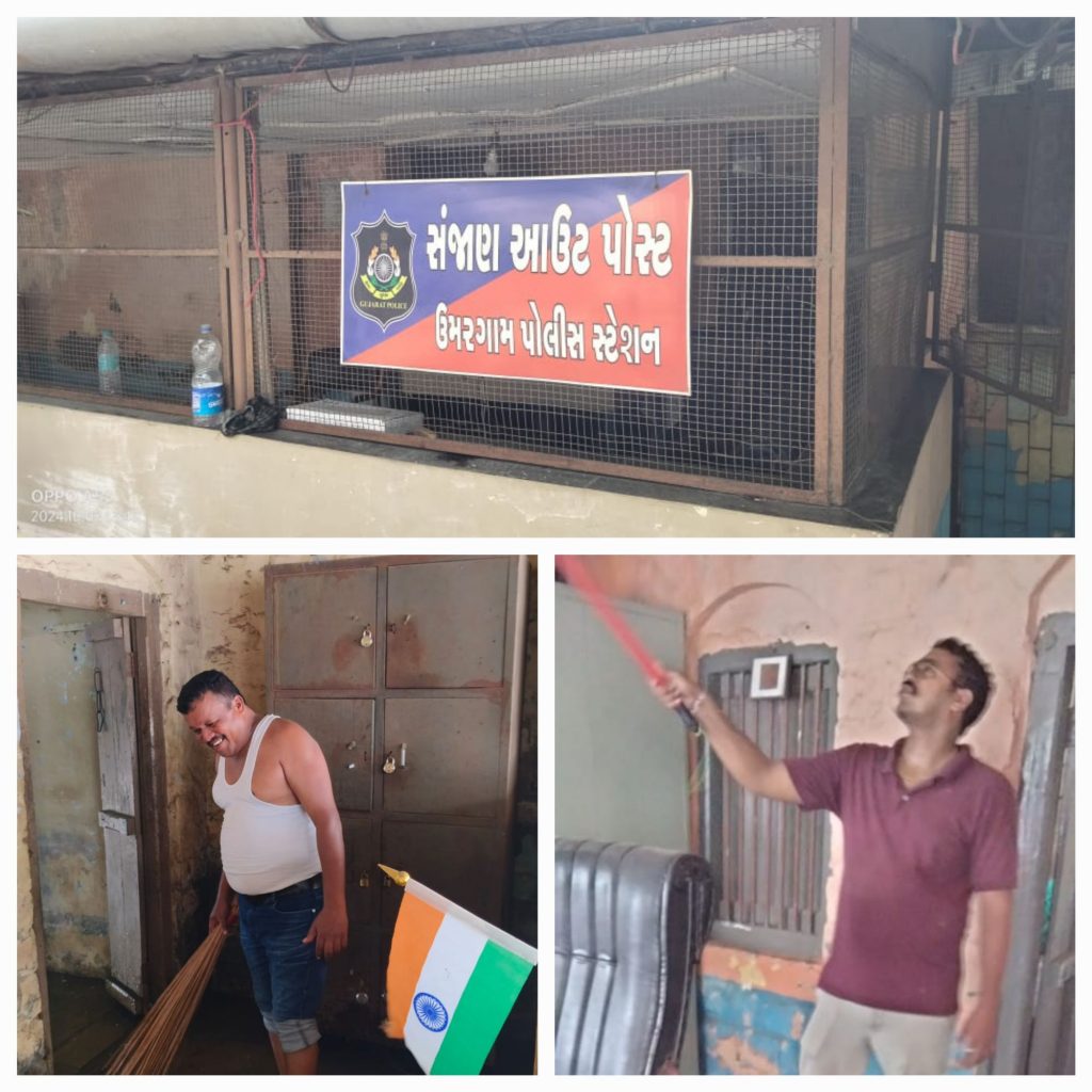 स्वच्छता अभियान अंतर्गत उमरगांव पुलिस स्टेशन के संजान आउटपोस्ट में भी साफ–सफाई का आयोजन किया गया,संजान पुलिस स्टेशन के इंचार्ज कैलाशभाई ठाकरे और उनकी पुलिस टीम द्वारा साफ सफाई अभियान चलाया गया.