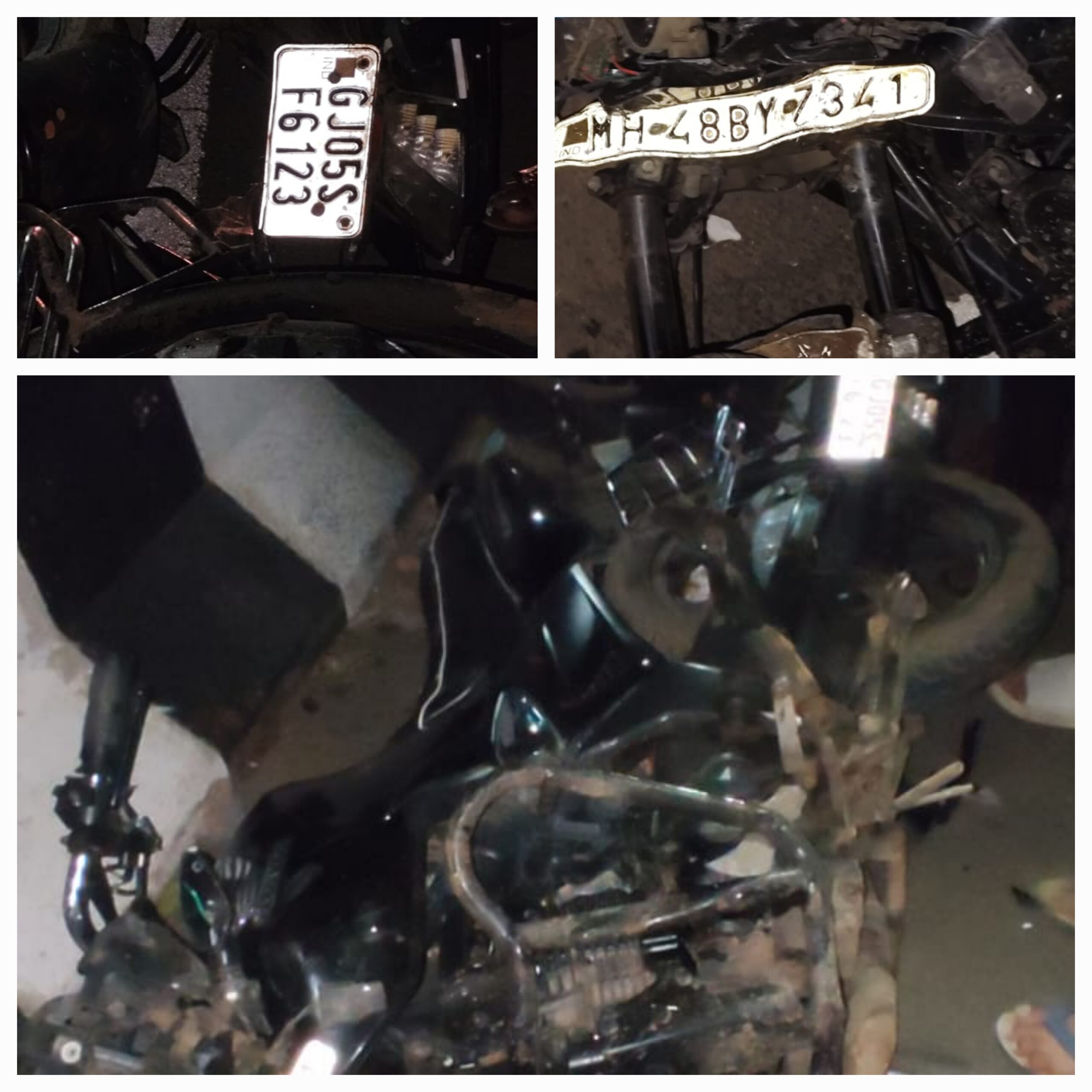 संजान ओवरब्रिज पर दो बाइकों के बीच जोरदार आमने-सामने टक्कर हो गई, जिसमें दोनों चालकों को गंभीर चोटें आईं। स्थानीय लोगों का कहना है कि ओवरब्रिज पर स्ट्रीट लाइट की सुविधा न होने के कारण यह हादसा हुआ।