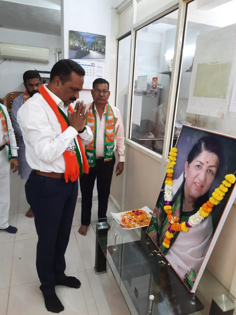 सोमवार की सुबह स्वर कोकिला भारत रत्न आदरणीय स्व. लता मंगेशकर के लिए दमण भाजपा कार्यालय पर भाजपा के प्रदेश प्रमुख दीपेश टंडेल की अगुआई में श्रद्धांजलि कार्यक्रम रखा गया। जिसमें प्रदेश प्रमुख दीपेश टंडेल सहित उप प्रमुख नवीनभाई पटेल, डीएमसी के प्रमुख सोनलबेन पटेल तथा भाजपा के पदाधिकारी मौजूद थे। इसी क्रम में सिलवासा अटल भवन पर भी लता जी के लिए श्रद्धांजलि कार्यक्रम आयोजित किया गया। इस दौरान प्रदेश महामंत्री मनीष देसाई, प्रदेश उपाध्यक्ष हितेश लाड, महेश गावित सहित अनेक पदाधिकारीगण उपस्थित रहे।