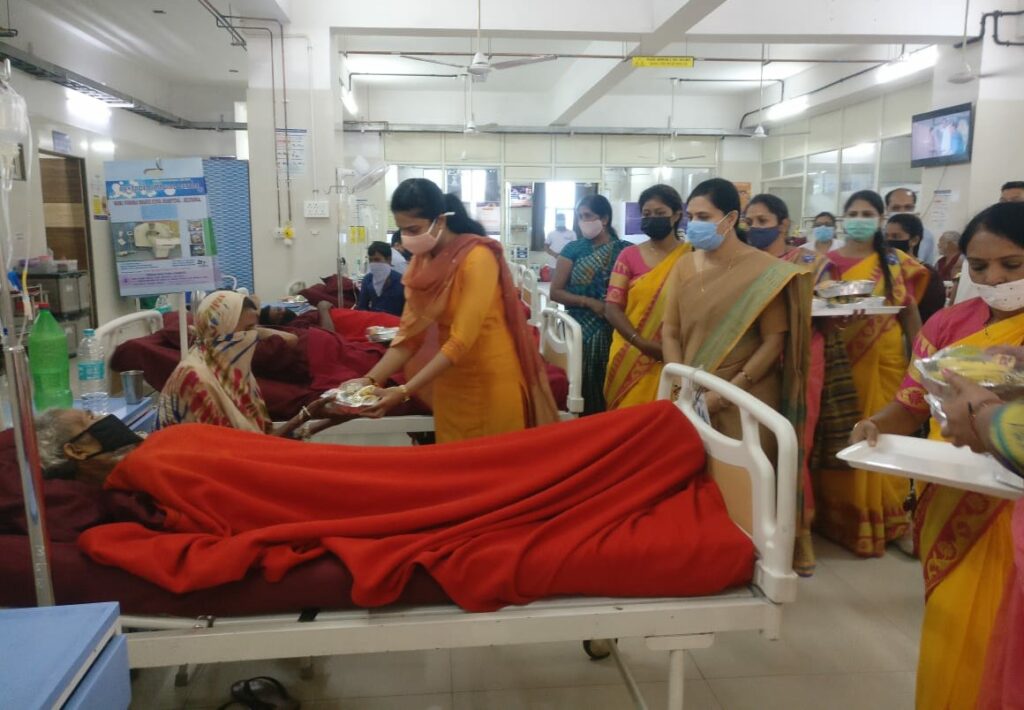 सांसद कलाबेन डेलकर अपनी बेटी दिविता और नवशक्ति महिला संगठन के कार्यकर्ताओं के साथ मिलकर साथ विनोबा भावे सिविल अस्पताल में व्यक्तिगत रूप से गईं और मरीजों को फल प्लेट वितरित कीं।